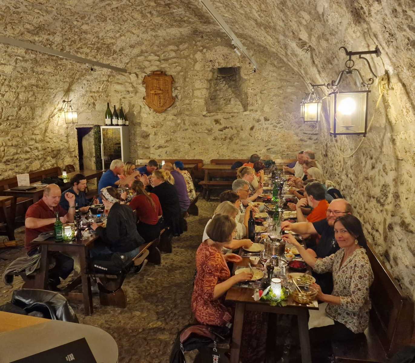 Ensuite direction le caveau pour le repas, fondue Chinoise ou Bacchus.Les cinq membres fondateurs sont présents, comme les membres du comité. Il y a quasi tous les membres du club.